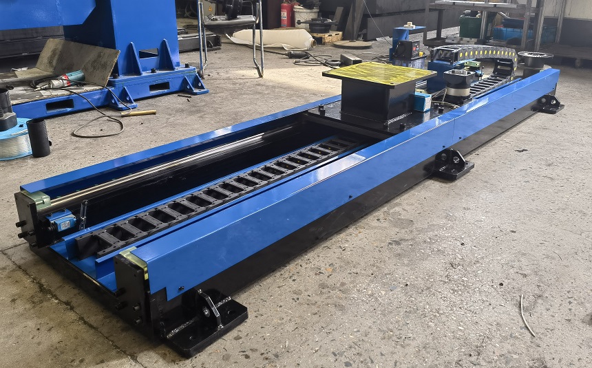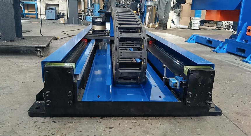 機器人行走地軌在工業機器人自動化集成中應用的比較廣泛,也可以叫做機器人外部軸,機器人第七軸 等。主要實現機器人移動的目的,滿足自動化集成需求。沖壓機器人,焊接機器人會用的比較多一些,提高了機器人的作業半徑。